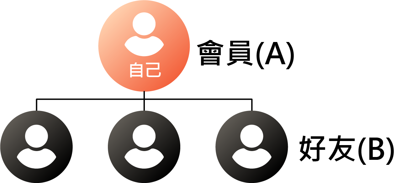若是你的好友也加入這個計畫,好友將可以得到他第一層所有好友 "千分之一" 投注回饋金。